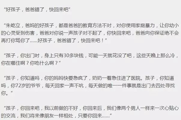 在儿子失踪期间,父亲每天都会在微信中发布多条寻人的消息,在其中的几篇寻人启事上,写满了父亲内心中想对儿子说的话。