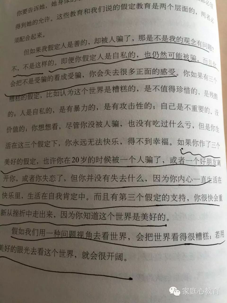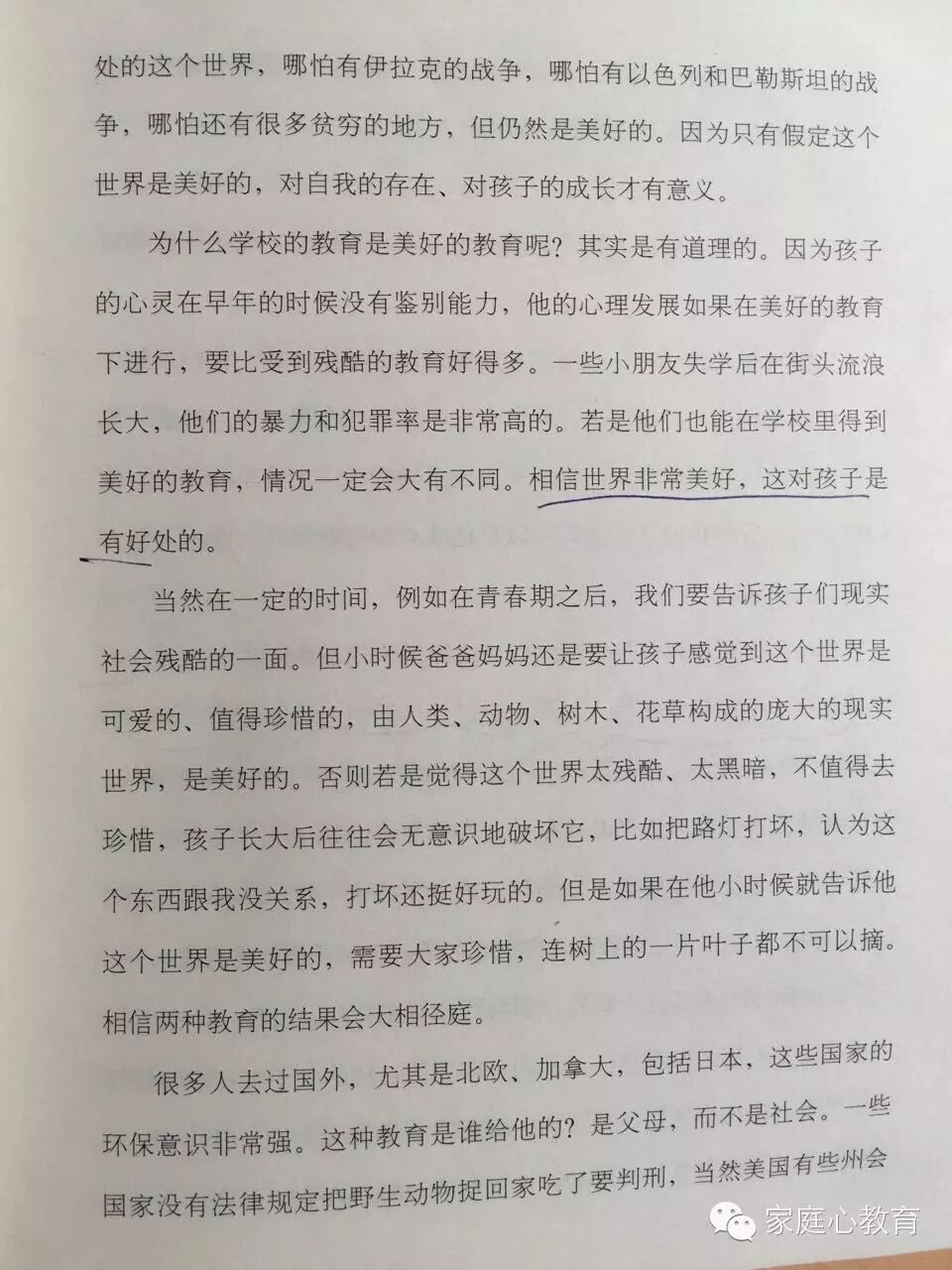大家好,今天想跟大家分享的是在孩子心中种下一颗美好的种子。我昨天看到一本书,说一个心理学家在没有当爸爸妈妈之前,写他的论文是成为成功父母的十二个条件。然后当他的第一个孩子出来后,他修改了论文题目叫成为成功父母的十二个建议;当他有第二个孩子的时候,他又再次修改了论文题目叫成为成功父母的十二个假设;当他有了第三个孩子的时候,他取消了论文。 第一、让孩子相信天地万物是善良和美好的。这就邀请孩子去观察每一颗小草,每一滴露珠,每一颗树,每一只小动物的生命。他们在遵循大自然的规律,春生夏长秋收冬藏,让孩子感受到他们,从而相信万事万物是美好的。所以家长要教育孩子爱护所有的公共设施,不要去践踏生命。第二、要求孩子相信人与人之间是美好的。希望孩子看到打扫垃圾的,卖菜的、我们身边遇到各种各样的人要告诉孩子他们的价值观、让他相信每个人都是美好的。第三、最核心的部分是让孩子感觉到他自己是美好的。所以我们要关注孩子的需求,跟孩子时时的互动,让孩子感受到他是美好的,他自己的使命是独一无二的。 通过在孩子的心中种下一颗美好、美丽和善良的种子,让孩子自信的生命得以健康的成长和万事万物、他人形成良好的互动。这就是今天分享的主题,各位家长早安! 总结:在孩子的心中种下一颗美好、美丽和善良的种子,让孩子自信的生命得以健康的成长和万事万物、他人形成良好的互动。